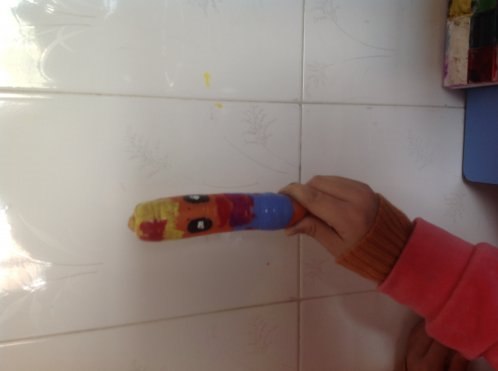 3用水粉颜料在胡萝卜上进行创作