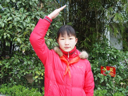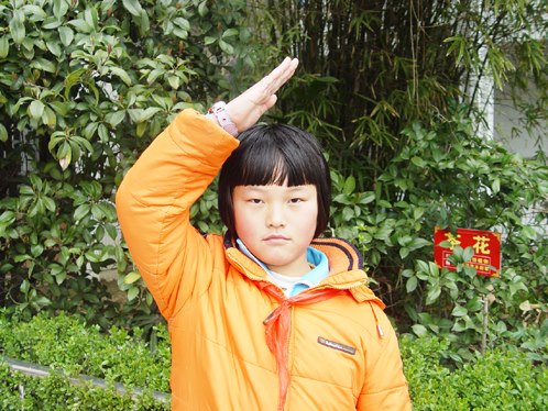 在上学期,李颖同学担当了一学期的升旗手培训工作,她从不叫苦、叫累,默默奉献着。
