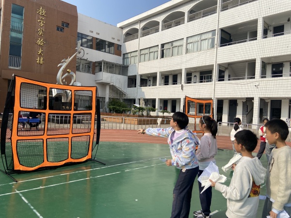 此外,其他项目也因家长志愿者的参与更显温馨。锤趣大冲关中,家长志愿者帮着摆放道具、校准目标,还不忘提醒孩子们注意安全;平衡拍球项目里,志愿者们蹲在一旁,为孩子们计数的同时实时给予技巧指导;背篓投掷区域,不少家长志愿者主动承担起“接球手”的角色,与孩子们默契配合,让游戏体验更富乐趣;飞机穿梭项目中,志愿者们协助老师整理纸飞机、维护排队秩序,确保每个孩子都能公平参与。