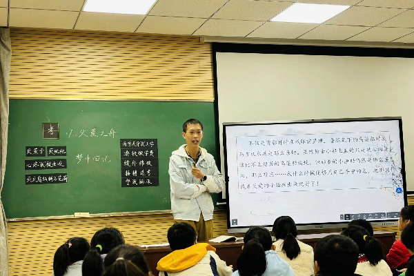 邹梦尧老师执教了《父爱之舟》一课,文章以江南水乡常见的乌篷船为情感载体,通过"送考路上父亲弯腰缝棉被""凑钱缴学费""庙会里买热豆腐脑却舍不得自己吃"等生活片段,将中国式父爱中那种沉默而坚韧的特质展现得淋漓尽致。作者采用白描手法勾勒细节,如"父亲低头缝补时鼻梁上滑落的汗珠",看似平淡的叙述中蕴含着汹涌的情感暗流。行课过程中,邹老师结合场景中的人物细节,引导学生想象补白来丰富感受。黄妍老师对梳理文脉部分提出了建议,要求将小标题的提炼聚焦于场景,给予学生能够模仿、运用的概括支架,以降低学生理解文本的难度,提升其归纳总结能力。