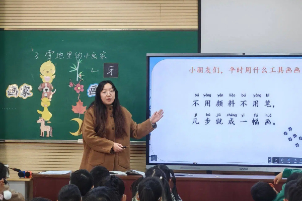 李亦彤老师执教了《雪地里的小画家》一课,以视频导入,营造了轻松愉悦的课堂氛围,瞬间点燃了学生们的学习热情。在教学过程中,李老师巧妙运用多媒体资源,展示了一幅幅美丽的雪景图以及小动物们在雪地里留下的可爱脚印,让学生们直观地感受到了课文所描绘的奇妙场景。对于生字教学,李老师采用了形象生动的方法,通过动作演示、字理讲解等方式,帮助学生轻松理解和记忆。