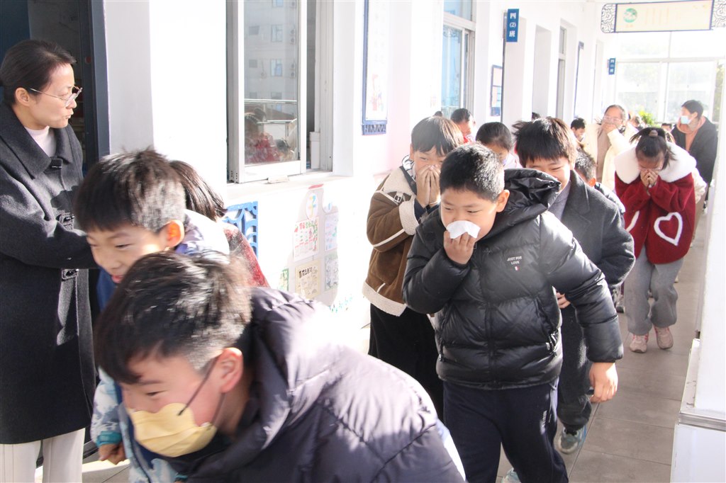 上午9时,急促的警报声划破校园的宁静,演练正式拉开帷幕。各位老师立即到达指定岗位,沉着指挥。各班学生在班主任的带领下,迅速反应,用湿毛巾捂住口鼻,弯腰低姿,按照预定疏散路线,快速、有序地向学校操场撤离。整个疏散过程紧张而不慌乱,仅用时 2分25秒,全校师生便已全部安全集结完毕,演练达到了预期效果。