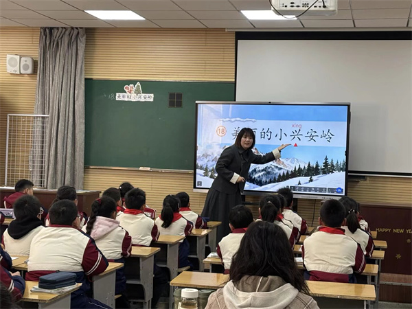华润小学徐明娟老师则带领三年级学生走进《美丽的小兴安岭》。徐老师以生动的语言、丰富的图像和巧妙的情境创设,将北国森林的四季画卷徐徐展开。课堂中,学生不仅品味到文字之美,更在小组合作中尝试表达与创作,实现了从“赏美”到“言美”的能力跃升。