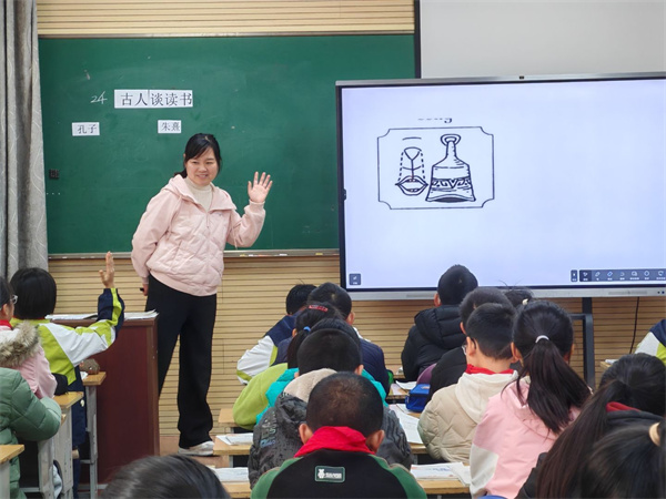 活动聚焦学生核心素养的培养,围绕不同学段的语文教学展开深度研讨。浦前小学郭春颖老师执教五年级《古人谈读书》一课,以古朴雅致的课堂设计,引导学生穿越千年与先贤对话。她通过诵读、释义、思辨层层推进,不仅让学生感悟古人读书的智慧,更激发其对当代学习方法的反思,课堂间仿佛弥漫着穿越时空的书香。